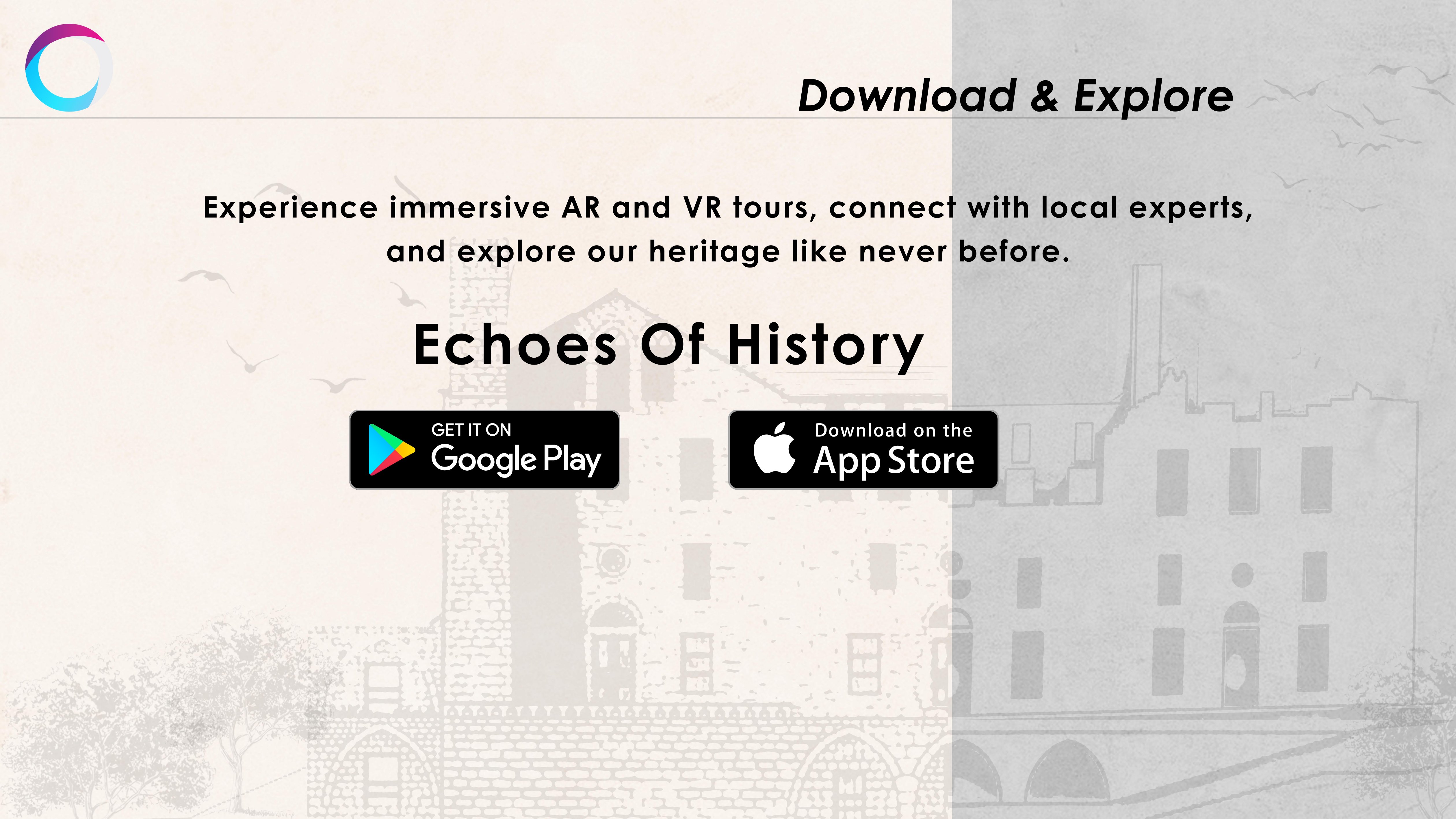 Echoes of History is an advanced AR and 360-degree platform that virtually showcases Lebanon’s historical treasures, starting with the Kfarmatta Silk Mill. Users experience immersive views, AR insights inside the mill, and aerial perspectives from drone footage. Alongside these, embedded narratives detail the rich history of each site. Designed for everyone, from students to travelers, Echoes of History merges tech and storytelling to make Lebanon’s heritage universally accessible and engaging.